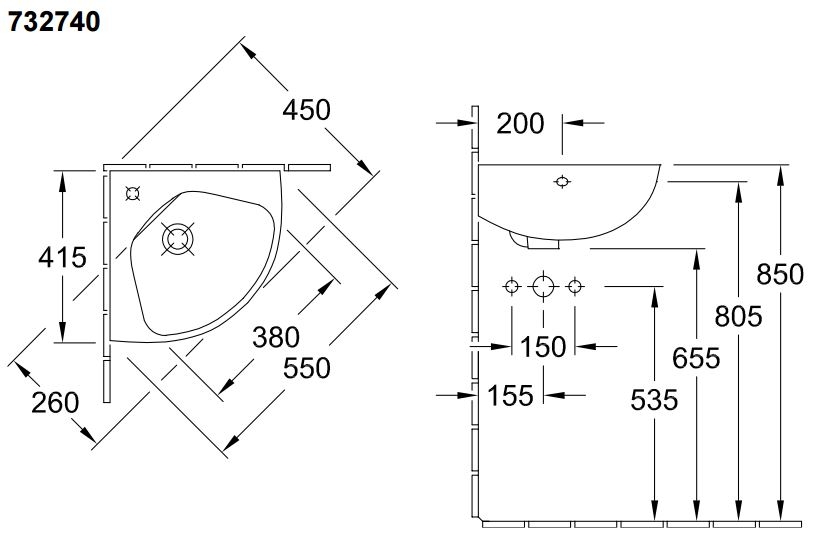 Villeroy & Boch O.Novo Compact hoekfontein 41.5x41.5cm ceramic+ wit 0132179