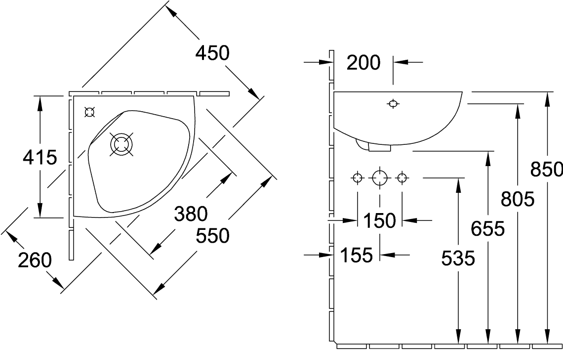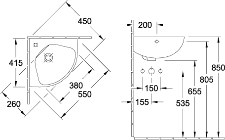 Villeroy & Boch O.Novo Compact hoekfontein 41.5x41.5cm ceramic+ wit