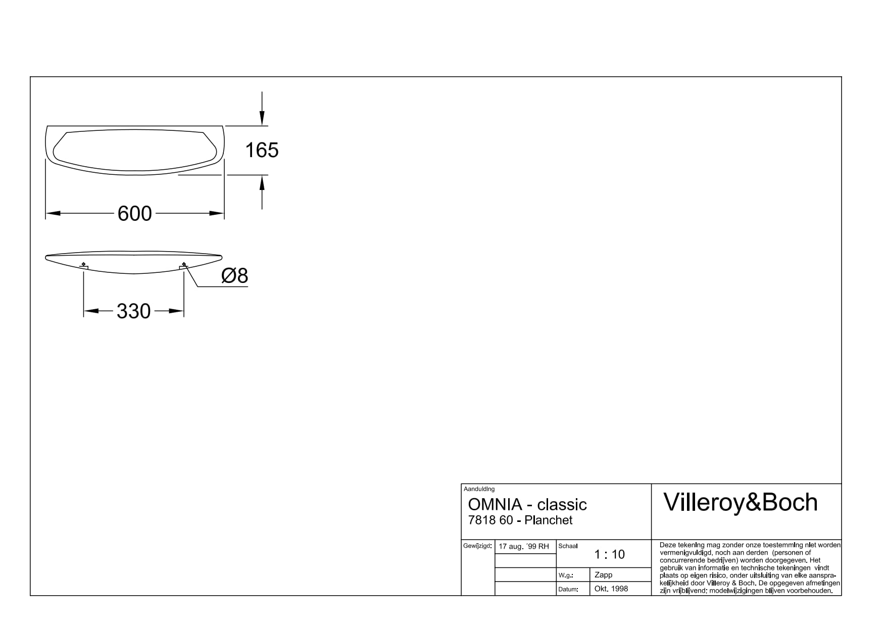 Villeroy & Boch Omnia Classic planchet 60x17cm wit