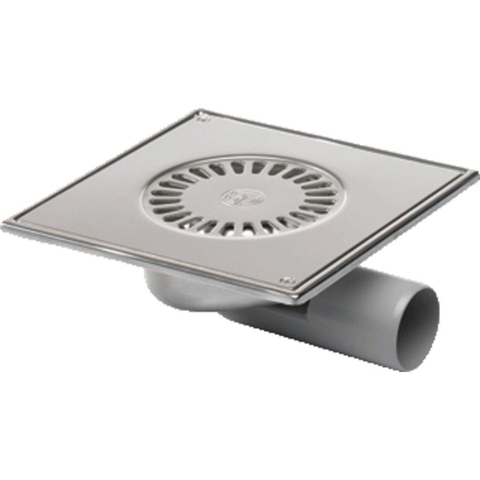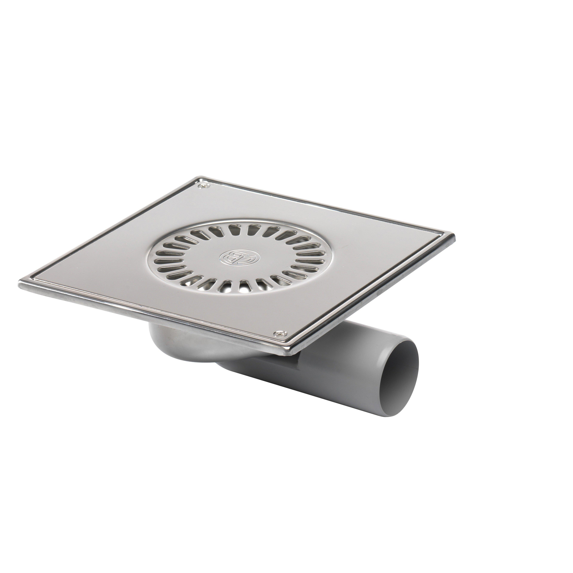 Van den Berg RVS vloerput zij en onderuitlaat 50mm 20x20cm met vastgeschroefd rooster