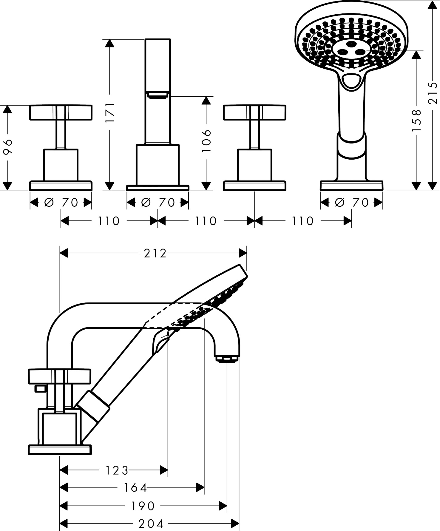 AXOR Citterio kleurset voor 4 gats badrandkraan met kruisgreep zonder plaat chroom
