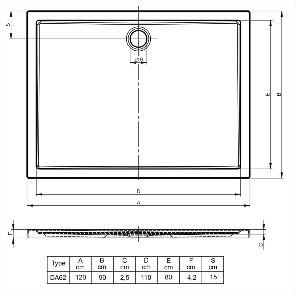 RIHO Zurich 254 Douchebak - 120x90x4.5cm - vloermontage - wit