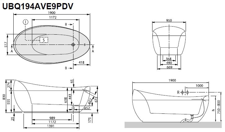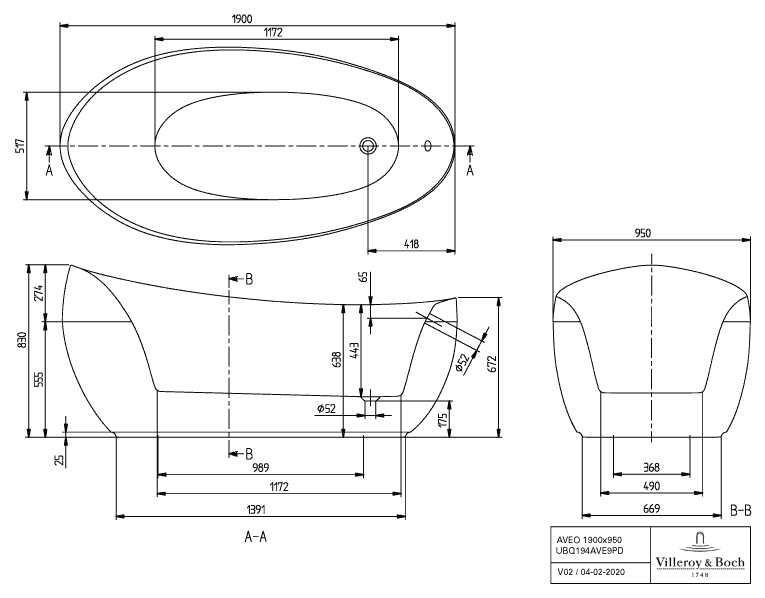 Villeroy & Boch Aveo bad 190x95cm quaryl ovaal met paneel en afvoer wit