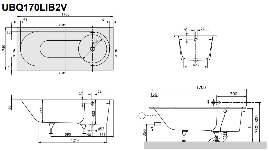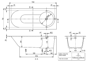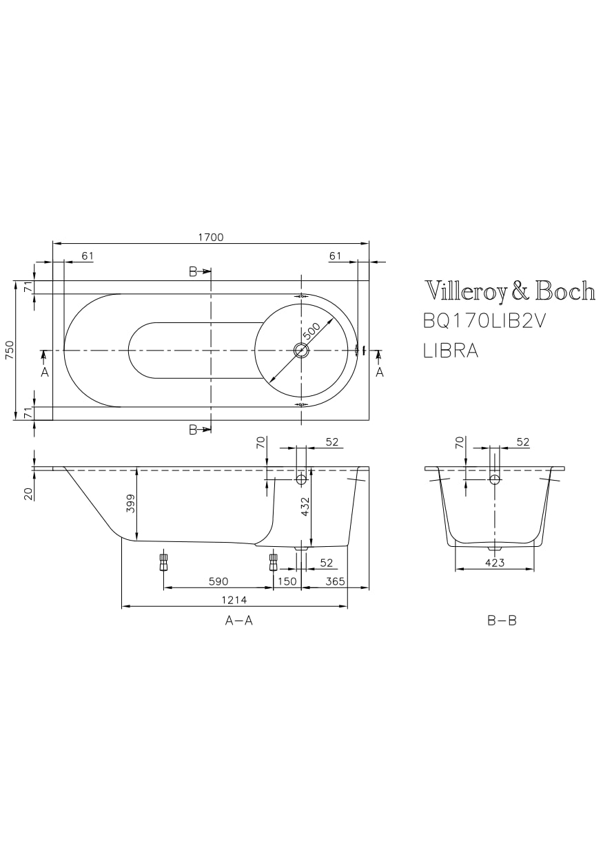 Villeroy & Boch Libra bad 170x75cm quaryl rechthoekig met poten wit
