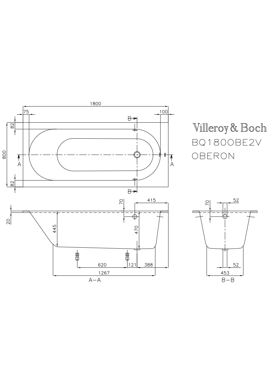 Villeroy & Boch Oberon bad 180x80cm quaryl met poten wit