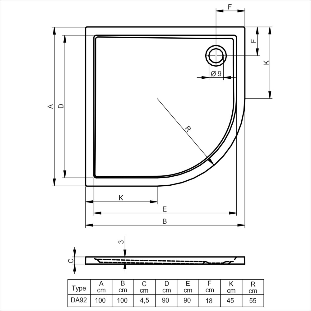 Deze douchebak is niet alleen een visueel aantrekkelijk element in de badkamer, maar ook zeer functioneel. Met een ruim formaat van 100x100x4.5cm biedt het voldoende ruimte voor comfortabel douchen. De vloermontage zorgt voor een stevige installatie en de R55 afwerking voegt een extra vleugje klasse toe aan het geheel.