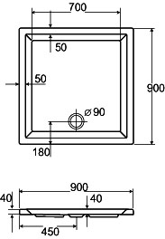 Plieger Liberty douchebak vierkant 90x90x4cm wit