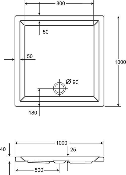 Plieger Liberty douchebak vierkant 100x100x4cm wit