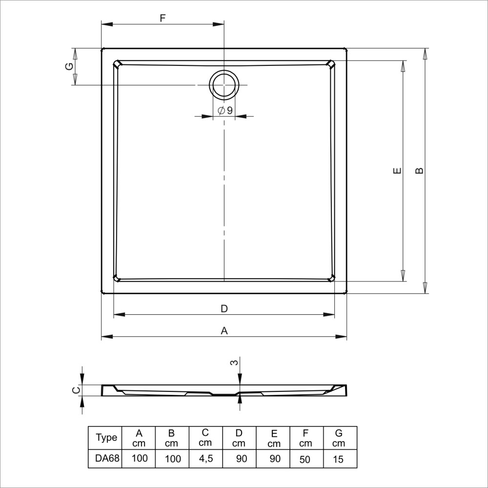 - Afmetingen: 100x100x4.5cm