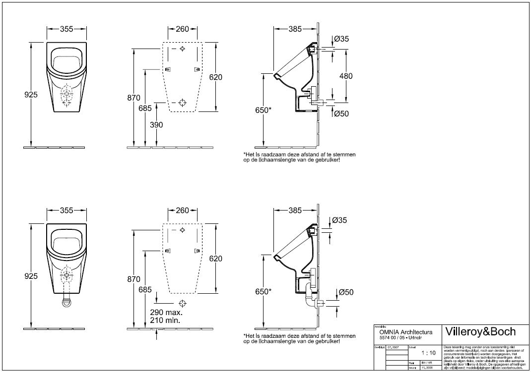 Villeroy & Boch Omnia Architectura urinoir met verdekte inlaat met bevestiging wit 0100998