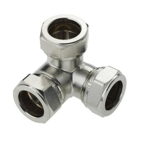 Bonfix vernikkeld knel hoek T stuk 15 mm gastec / kiwa
