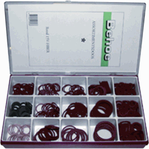 De Beer assortimentsdoos type rood 15V fiber en rubberringen