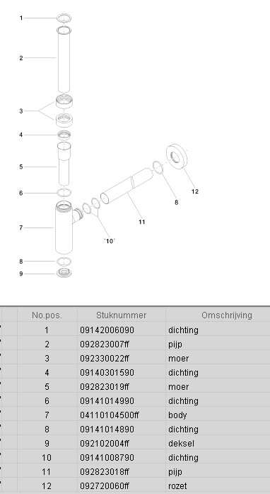 | Aansluiting sifon-afvoerplug | wartelmoer |