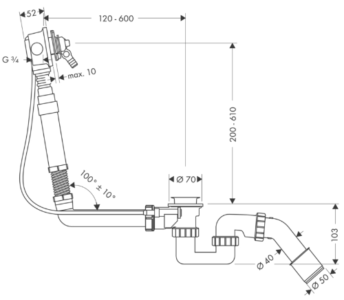 Hansgrohe Exafill badafvoer , overloop en vulcombinatie met waste basisgarnituur voor speciaal bad
