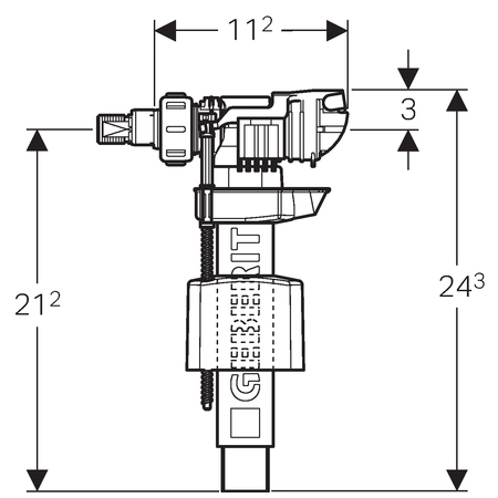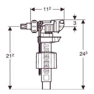 Geberit Unifill vlotterkraan type 380 wateraansluiting zijkant 3/8" nippel van messing