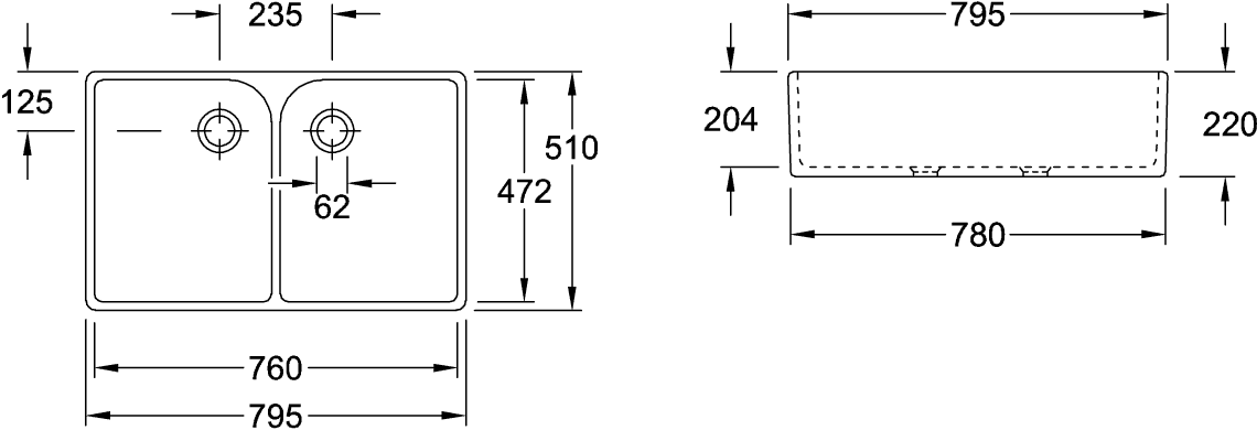 Villeroy & Boch O'novo gootsteen dubbel 80x50cm ceramic+ wit