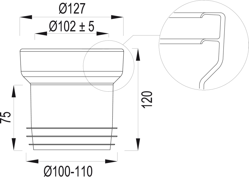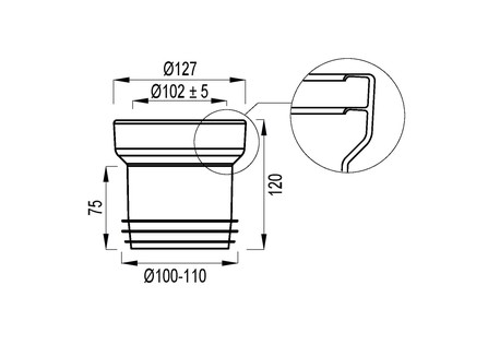 | Uitwendige buisdiameter aansluiting 1 | 110 mm |