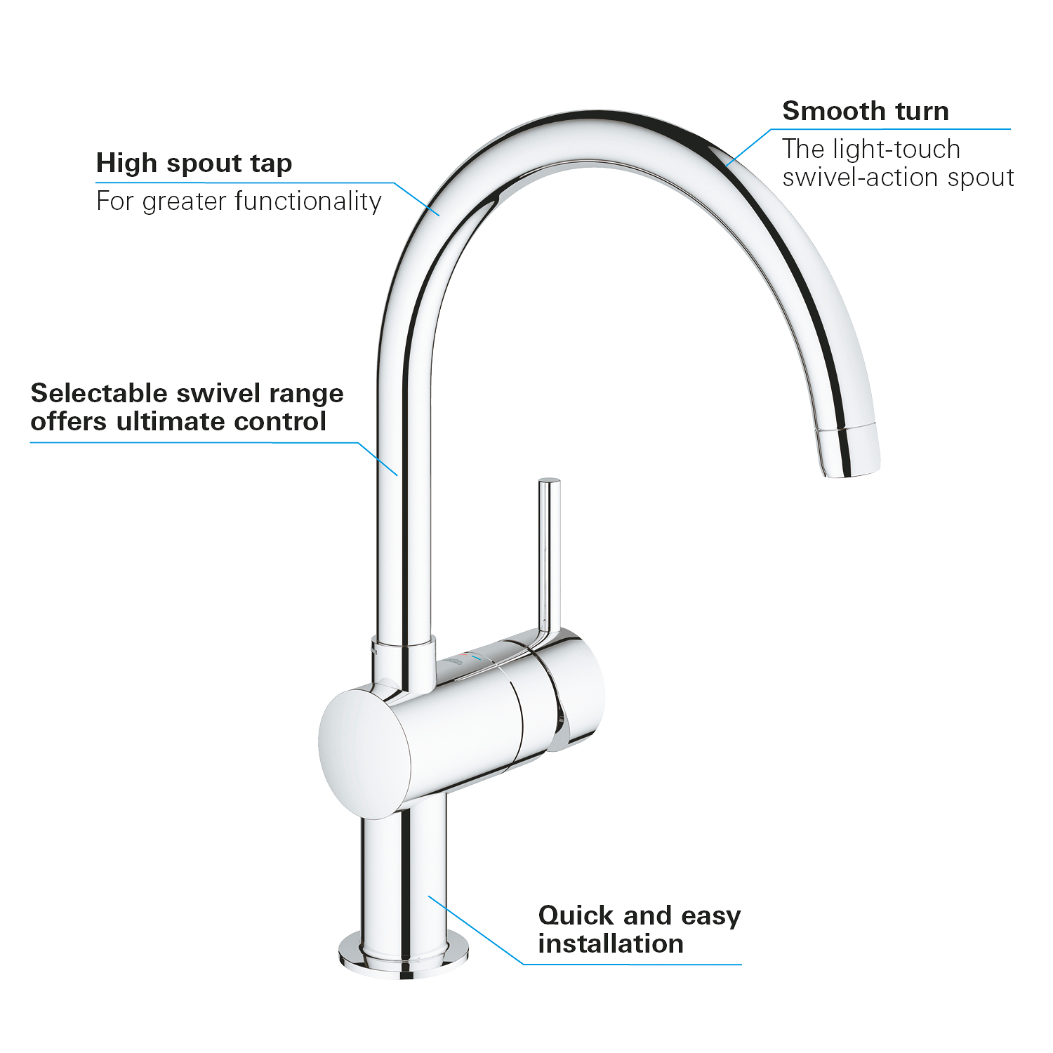 GROHE Minta Keukenkraan - hoog - draaibare ronde uitloop - chroom