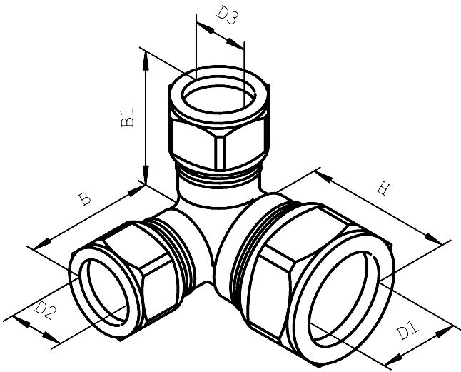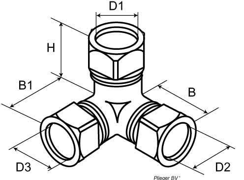 VSH Super Knel Messing knel hoek T stuk 22x15x22mm