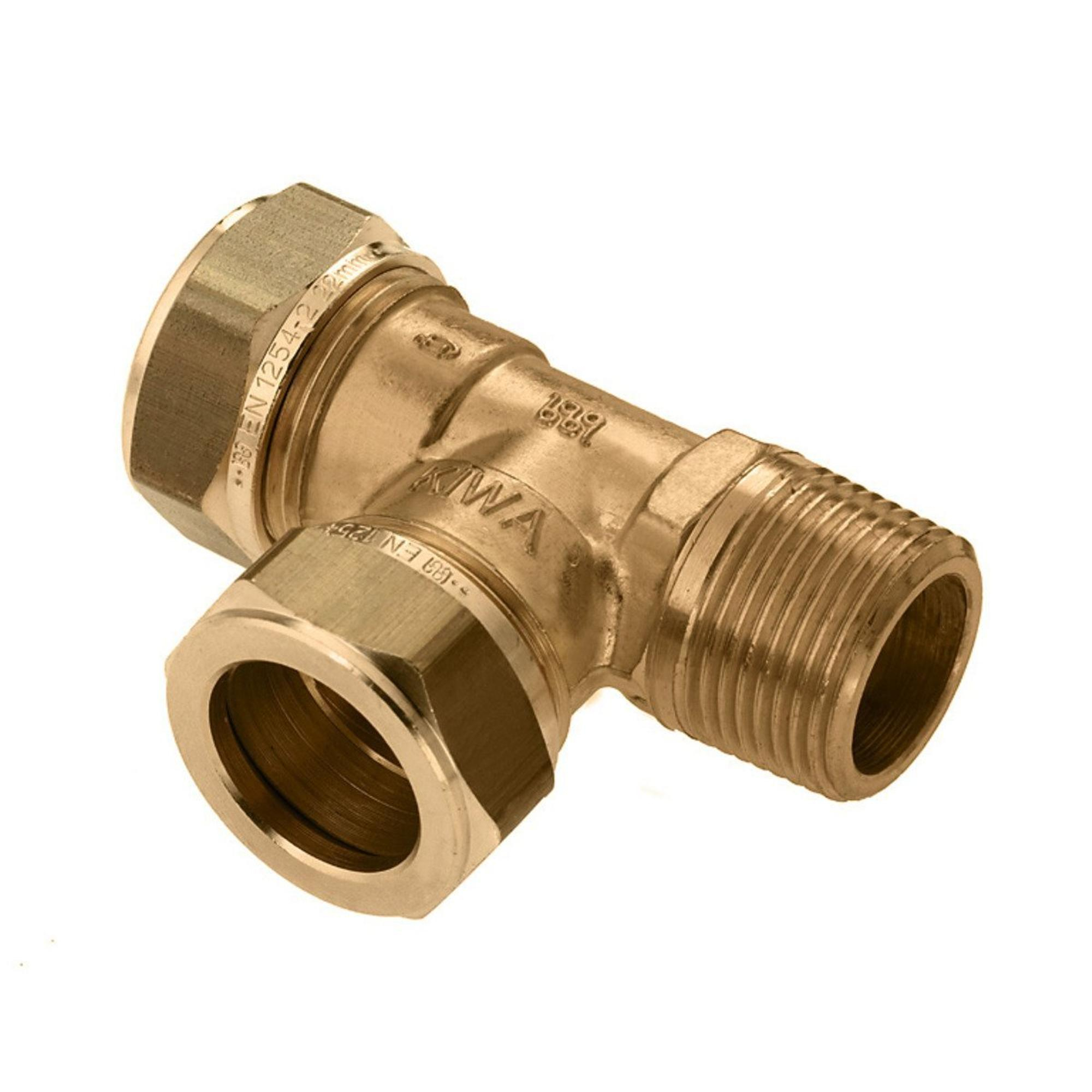 Bonfix messing knel T stuk verlopend buitendraad 15x15mmx1/2 gastec / kiwa