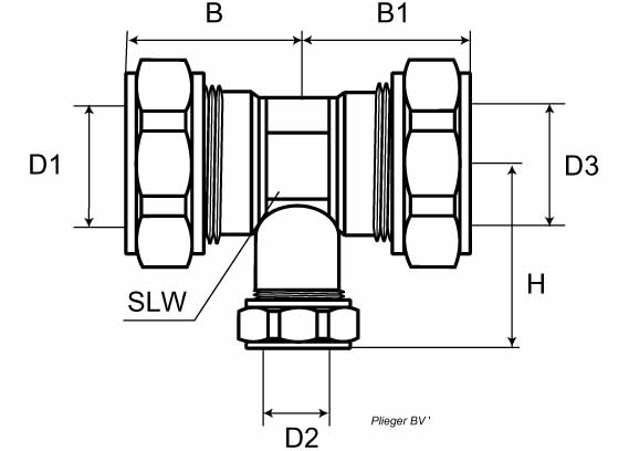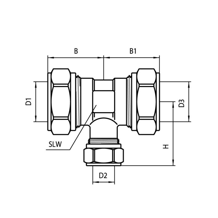 VSH Super Knel Messing knel T stuk verlopend 22x22x15mm