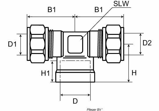 VSH Super Knel Messing knel T stuk verlopend 15x1/4 bidrx15mm conisch
