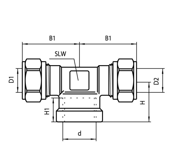 VSH Super Knel Messing knel T stuk verlopend 22x3/8 bidrx22mm