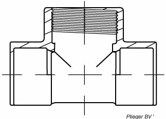 Messing T stuk capillair x binnendraad x capillair 22x1/2x22mm Kiwa