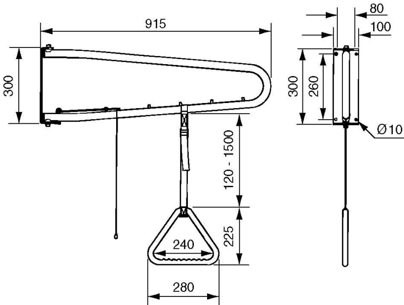 Handicare Linido papegaai wegzwenkbaar voor muurbevestiging wit