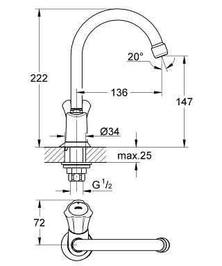 GROHE Costa L toiletkraan hoge draaibare uitloop chroom