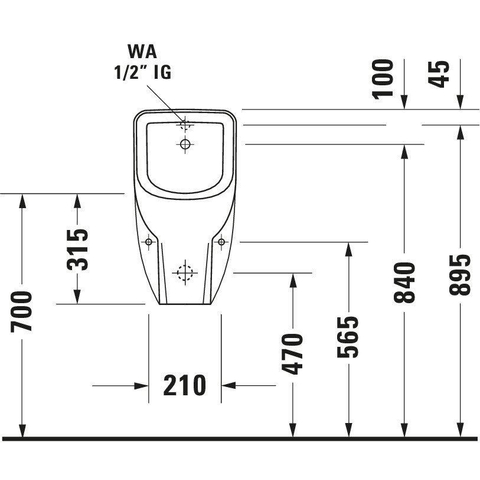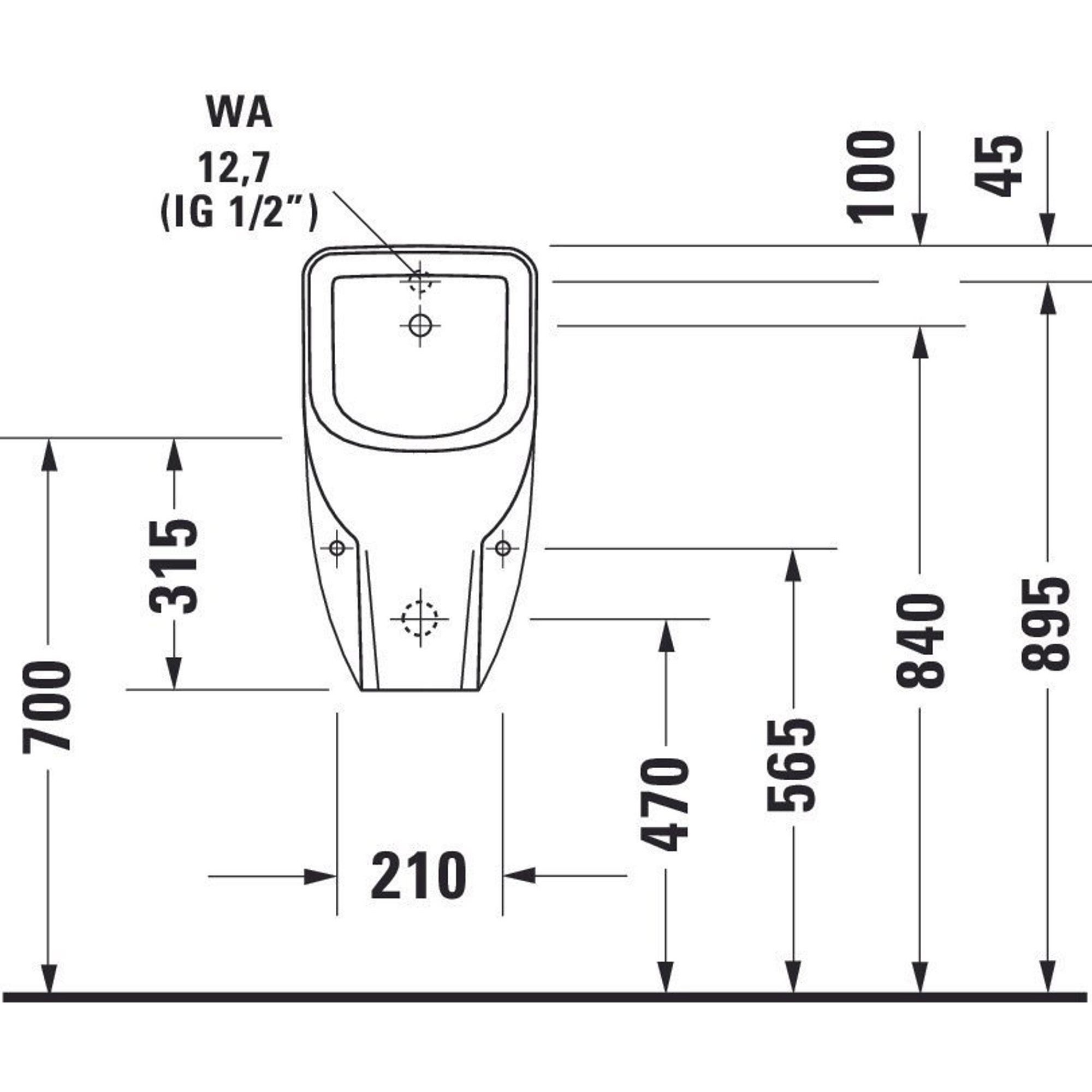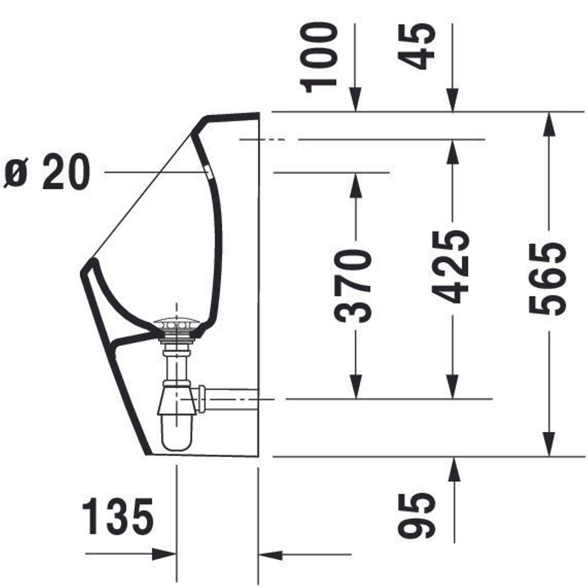 Duravit D-Code urinoir - 305 x 290 mm - verdekte toevoer - rimless - met bevestiging