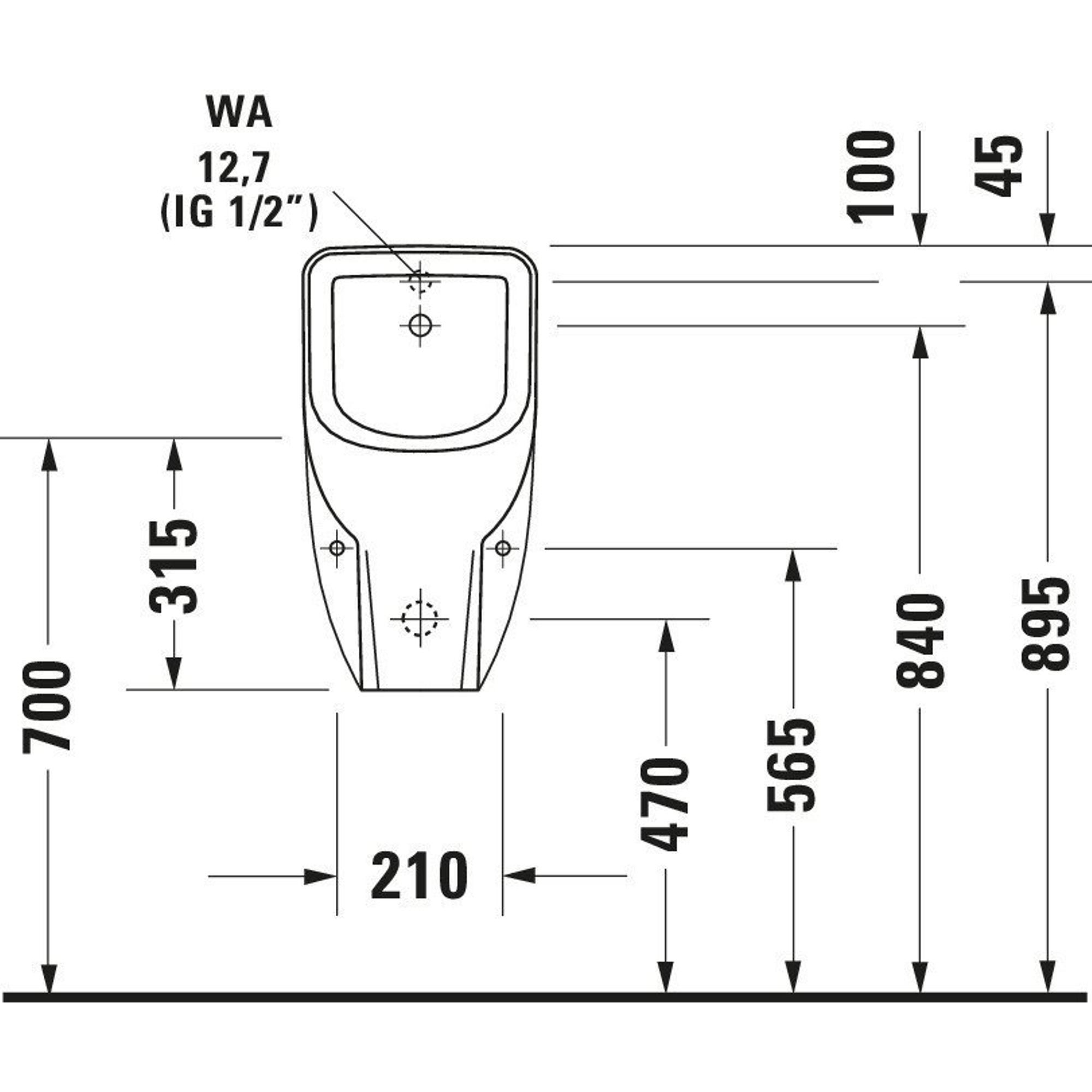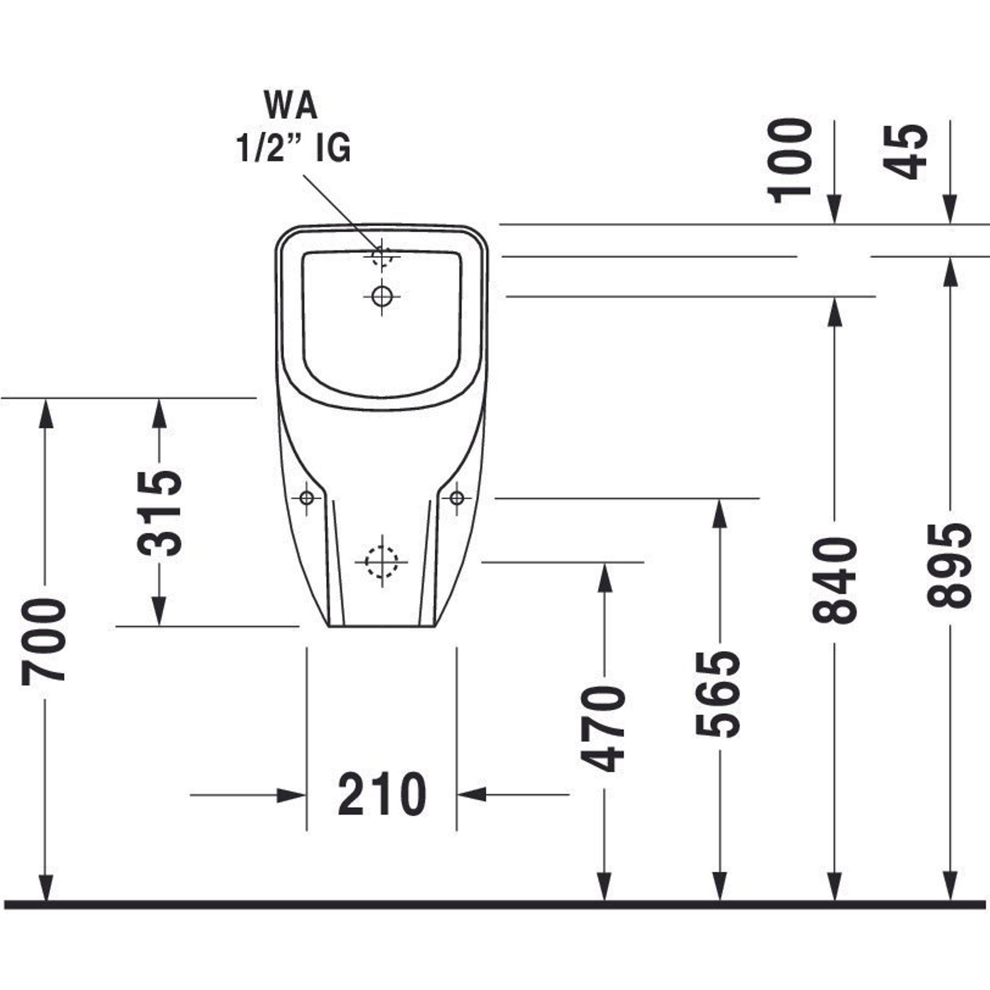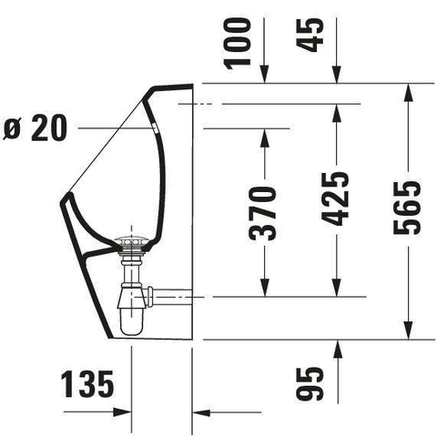 Duravit D-Code urinoir m. achterinlaat m. bevestiging m. vlieg z. spoelrand m. sproeikop en sifon wit