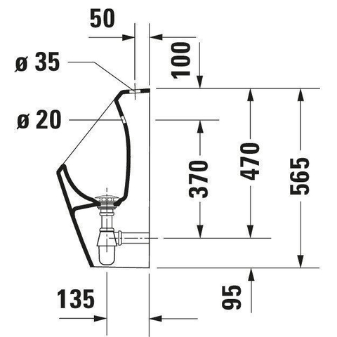 Duravit D-code urinoir toevoer boven met sifon en bevestiging wit