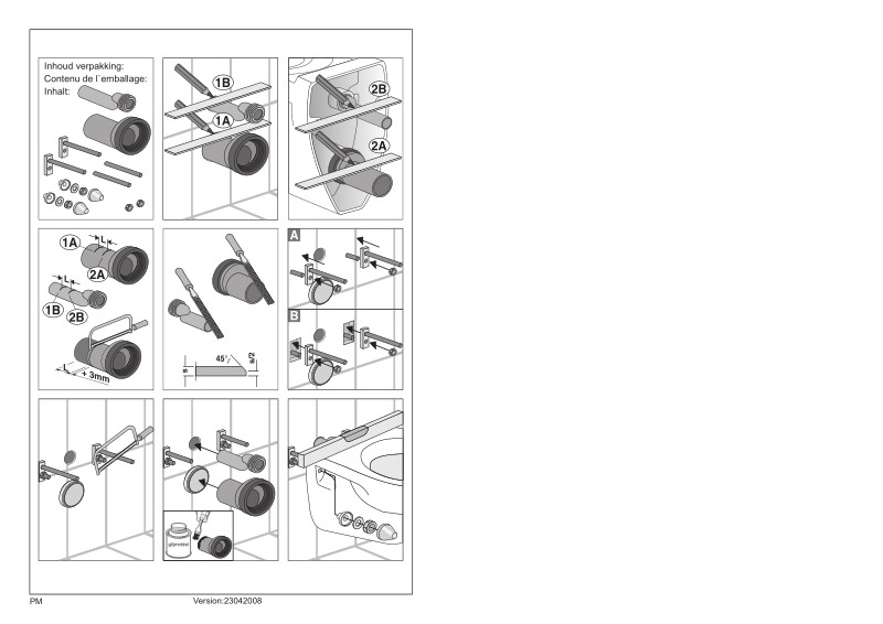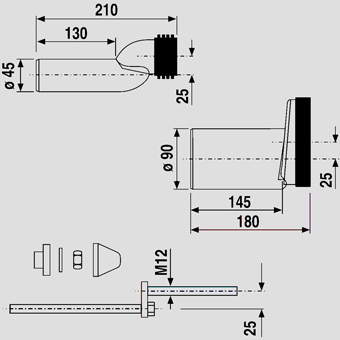 Sanit wandclosetaansluiting verhoogd 25mm 180mm complete aansluitset