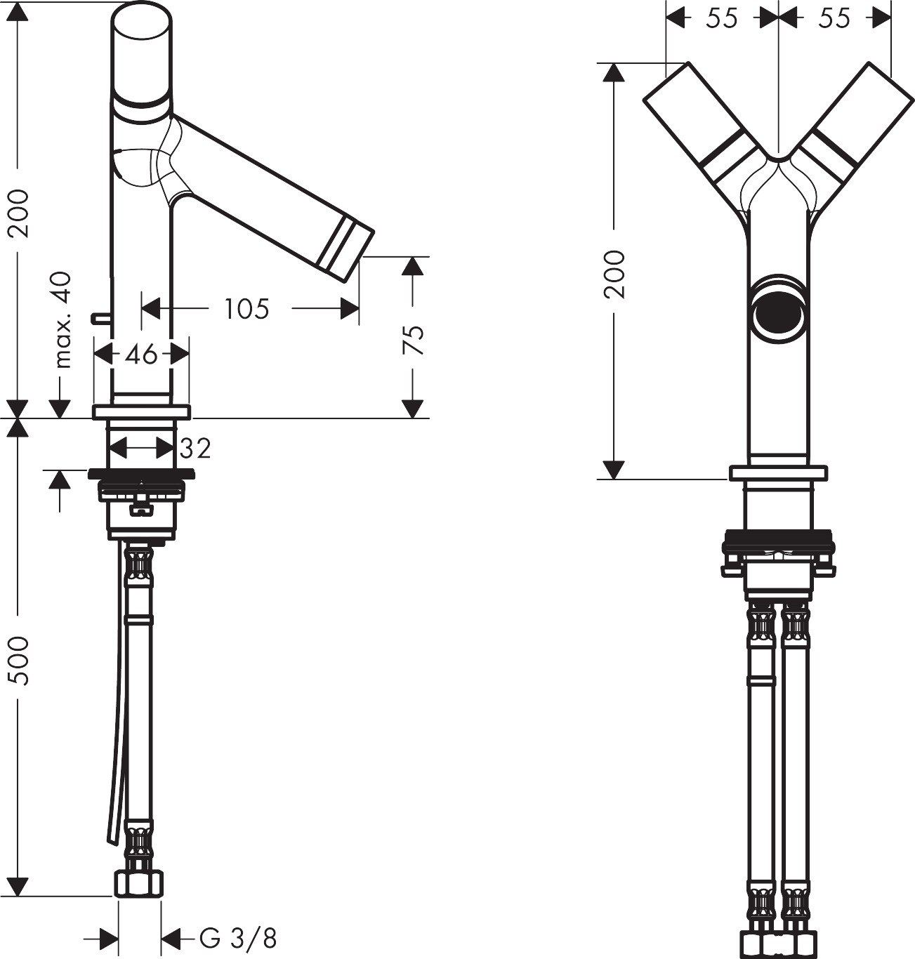 AXOR Starck wastafelkraan 2 greeps met waste en vaste uitloop