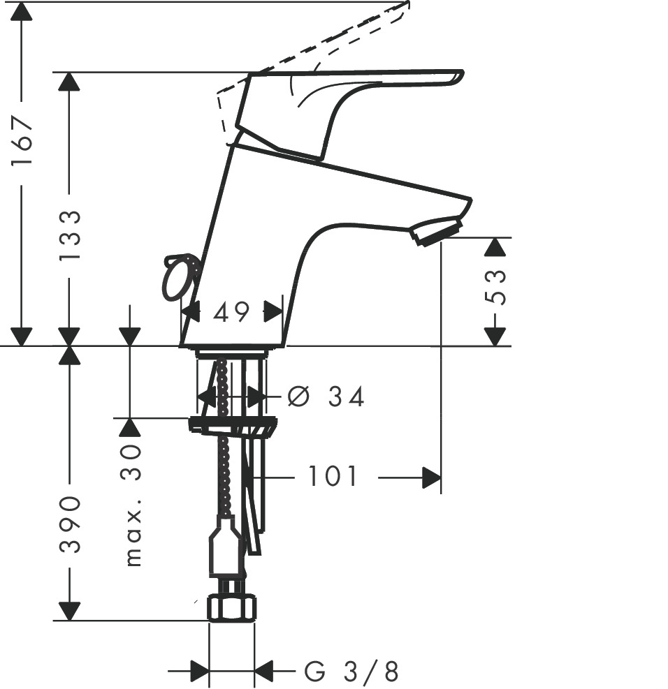 Hansgrohe Focus E2 wastafelkraan met ketting chroom