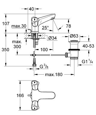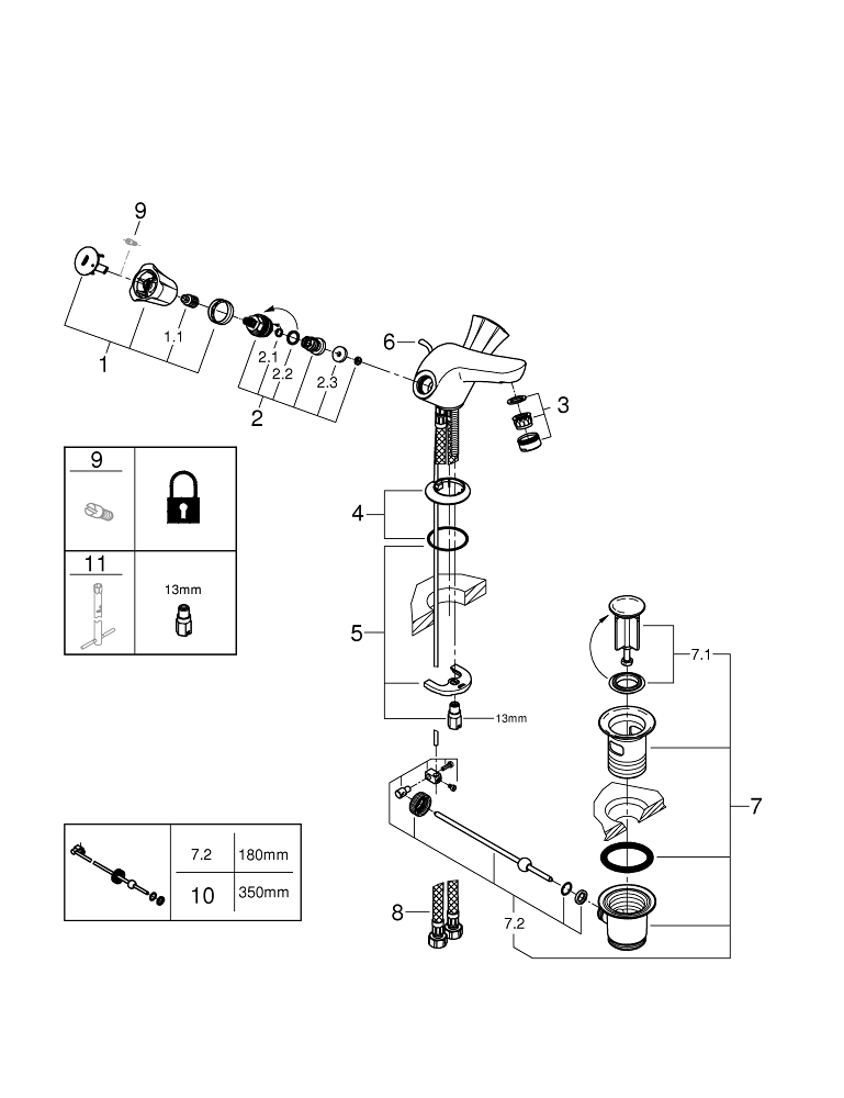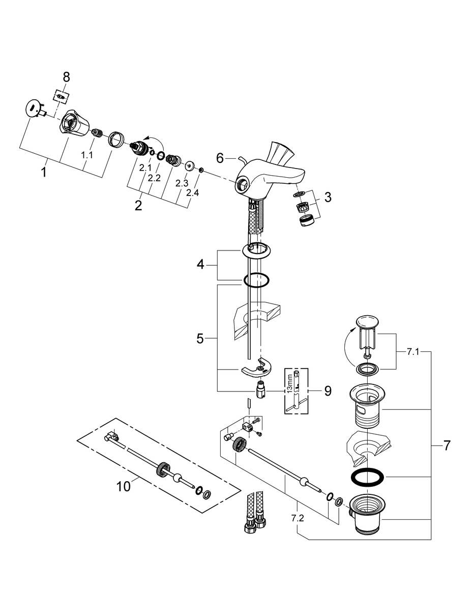 Grohe Costa L wastafelkraan met waste inclusief gegoten uitloop chroom