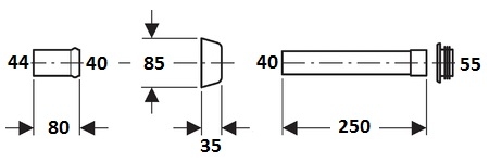Geberit aansluitgarnituur voor inbouw spoelbocht en staande closetpot 44mm lang 25cm wit
