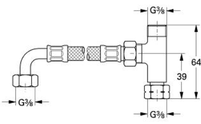 T-stuk, 2 uitgangen 3/8" buitendraad