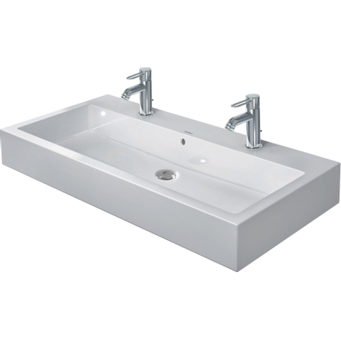 Duravit Vero Wastafel -100x47cm - 2 kraangaten - wondergliss - overloop - wit
