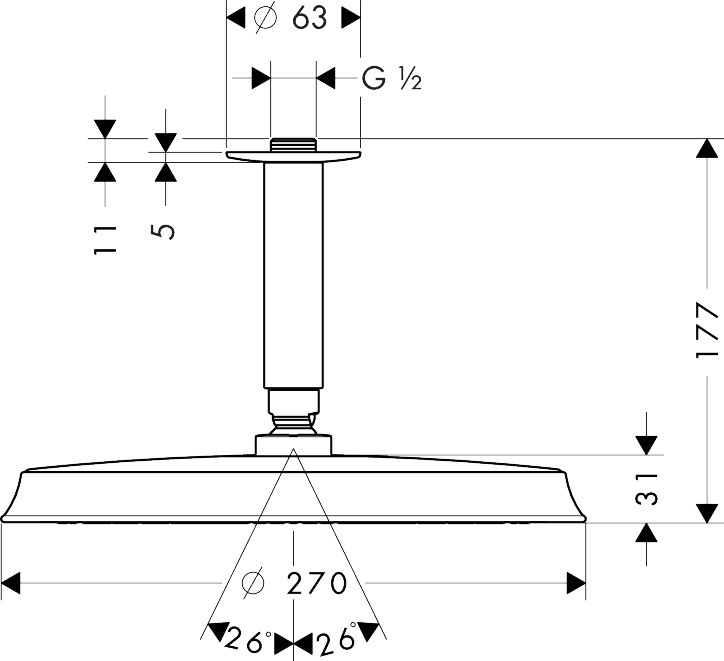 Hansgrohe Raindance Classic Air hoofddouche 27cm inclusief plafondaansluiting chroom