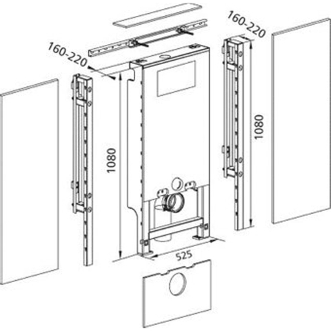Burda Santro WC element E met geberit inbouwreservoir UP320 zelfdragend 82.5/108cm met dual flush frontbediening max. breedte 125cm 0704121