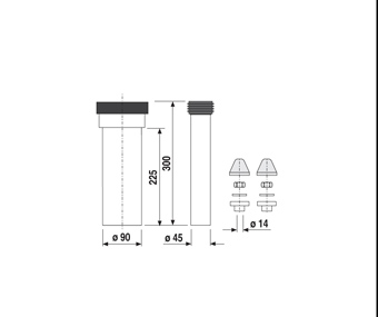Sanit wandclosetaansluiting recht verlengd 300mm complete aansluitset