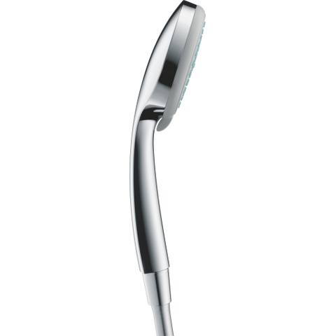 De Croma 100 Vario douchekop van hansgrohe biedt individueel doucheplezier van groots formaat. De douchekop met een diameter van 10 cm verwent met vier op elkaar afgestemde straalsoorten: De weldadige Rain-straal zorgt voor een verfrissende start van de dag. De Shampoo-straal is ideaal om haren uit te spoelen. Met de pulserende massagestraal worden vastzittende spieren losser en de normale straal kan op veel verschillende manieren worden gebruikt. wisselen van straalsoort kan eenvoudig door de gemakkelijk bewegende straalplaat te verdraaien.