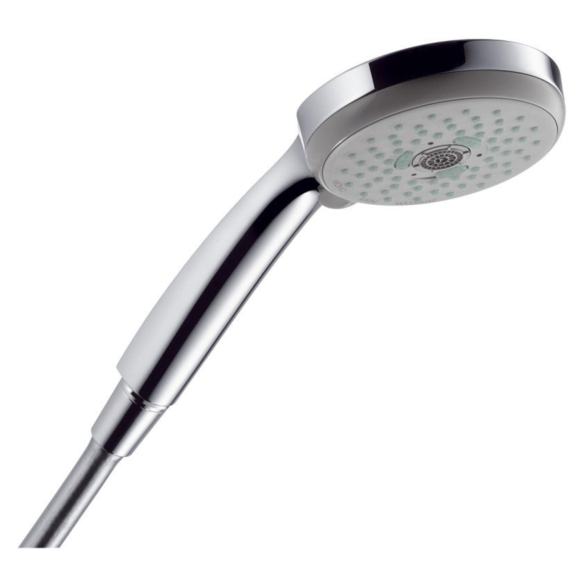 De Croma 100 Multi handdouche van Hansgrohe biedt keuze uit drie straalsoorten. Ga jij voor een krachtige regenstraal, heerlijke massagestraal of toch een normale waterstraal? Met de straalschijf selecteer je eenvoudig je favoriete straal voor de ultieme douchebeleving. De Croma 100 Multi handdouche heeft een grote douchekop waardoor het water als een ware deken om je heen valt. Je hebt keuze uit drie straalsoorten: massagestraal, krachtige regenstraal of een normale straal. Je kiest je favoriete straal door te draaien aan de straalschijf. Croma 100 Multi handdouche. Afmetingen: 92 x 272 x 90 mm. Diameter douchekop: 100 mm. Keuze uit drie straalsoorten: Rain krachtige regenstraal, normale straal en massagestraal. QuickClean - Kalk en vuil zijn eenvoudig te verwijderen door zacht te wrijven over de flexibele siliconennoppen.XXL Performance - Met een diameter tussen de 100 en 600 mm omhult deze douche je met een ware waterdeken.Keuze uit drie straalsoorten. Lange levensduur door anti-kalktechnologie. Extra grote douchekop voor ultieme douche-ervaring.