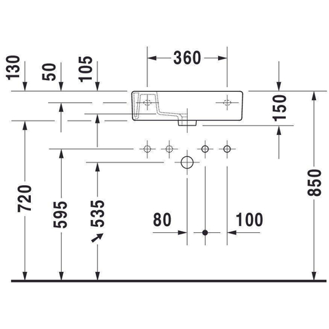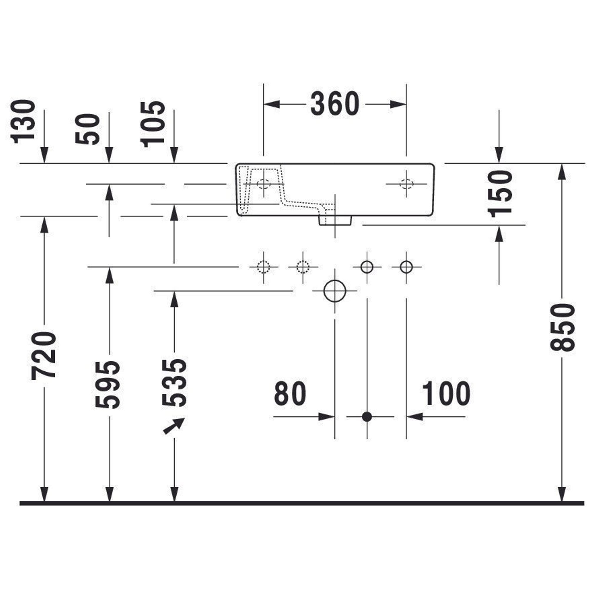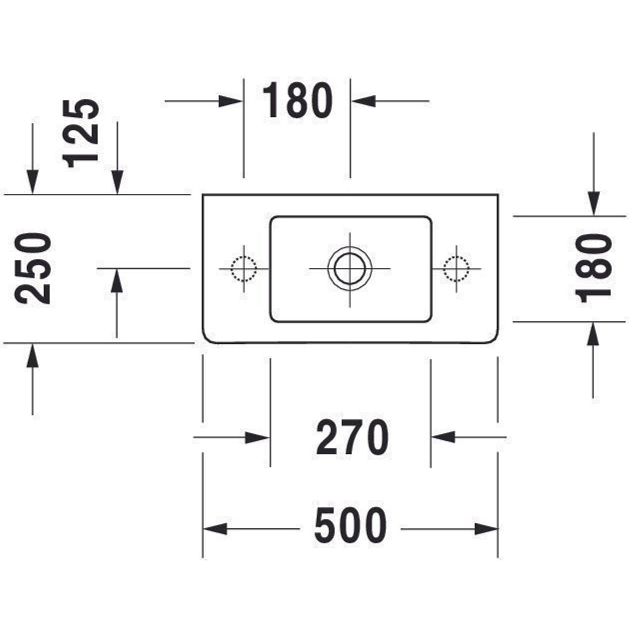 Duravit Vero fontein met voorgestoken kraangat links en rechts 50x25cm Wondergliss wit