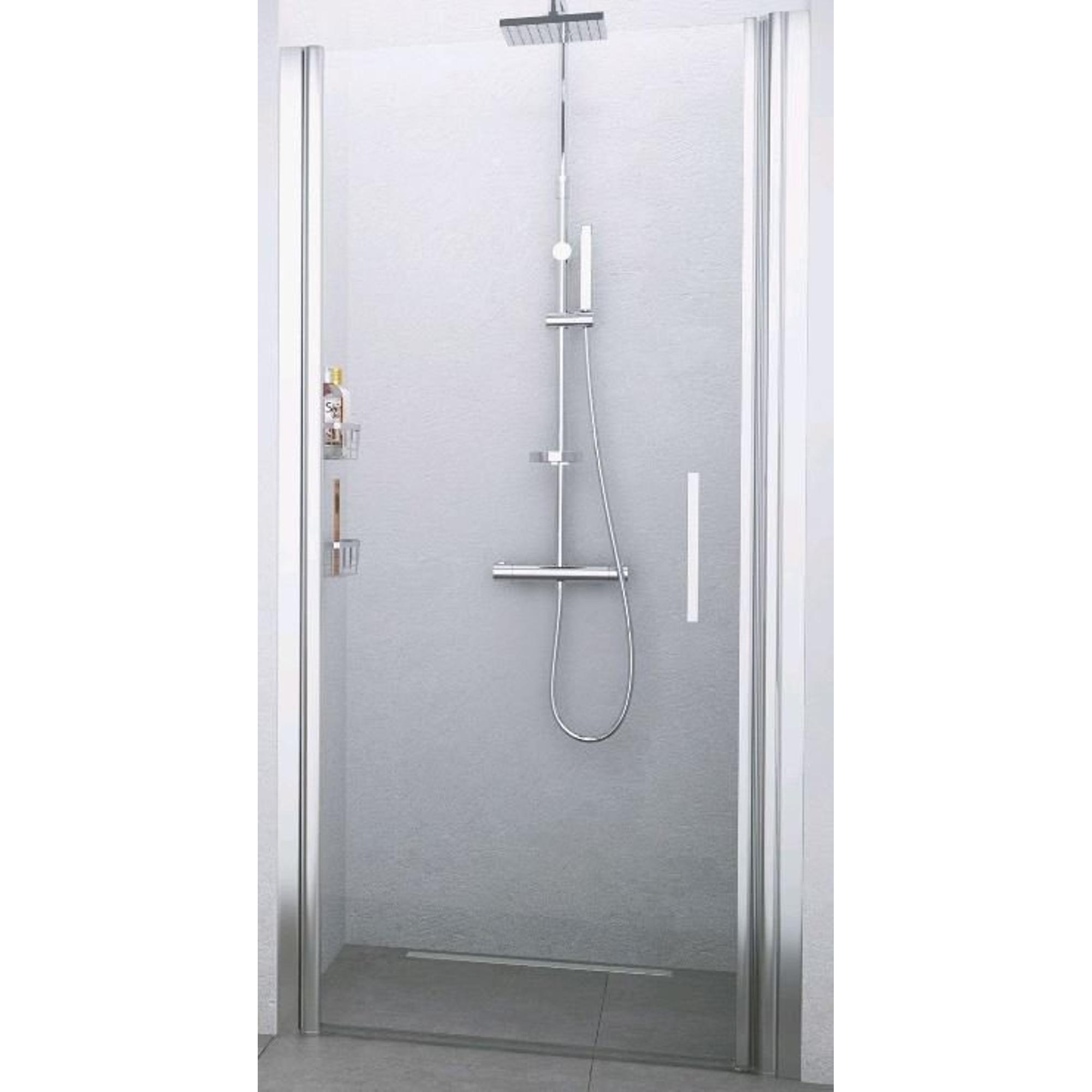 Novellini Giada draaideur voor nis 1B 87 90x195cm links mat chroom profiel en helder glas