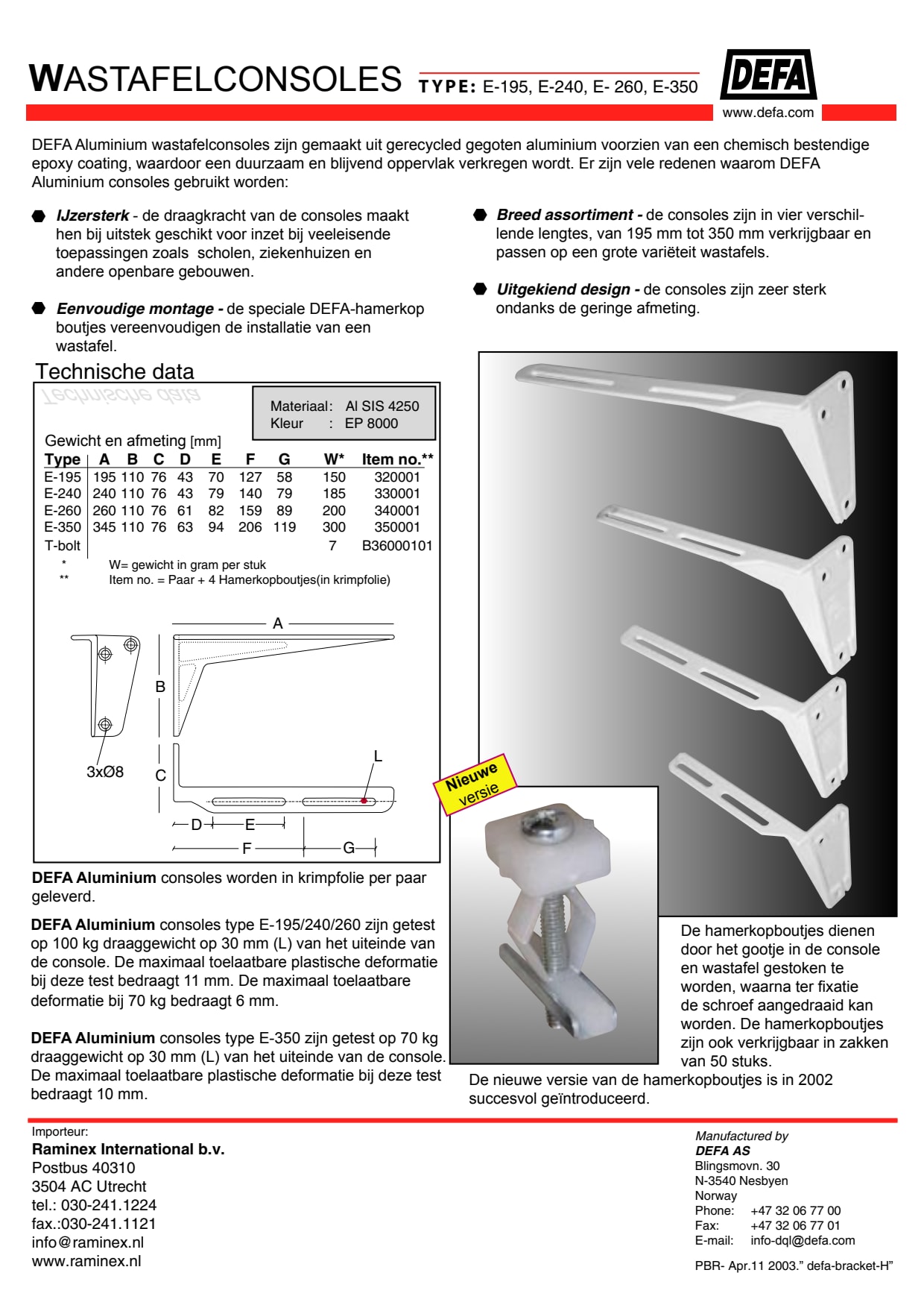 Raminex Defa paar gootsteen wastafelconsoles geplastificeerd 34.5cm