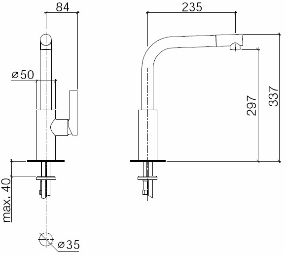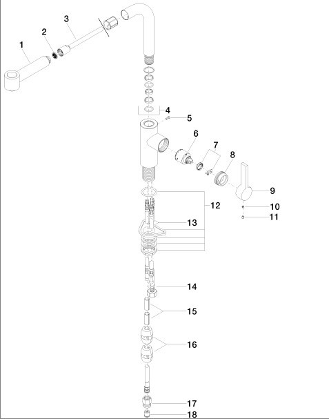 Dornbracht Elio keukenkraan met uittrekbare handdouche rechts platina mat