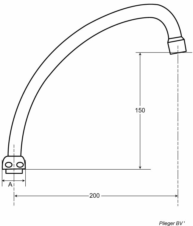 Venlo draaibare hoge uitloop met straalregelaar 3/4"x200mm chroom